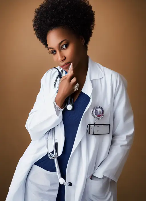 over 2 years ago photography, high quality, portrait of black woman as a doctor, white coat, intricate, beautiful and elegant, highly detailed, smooth, sharp focus 95779baf787 0 72