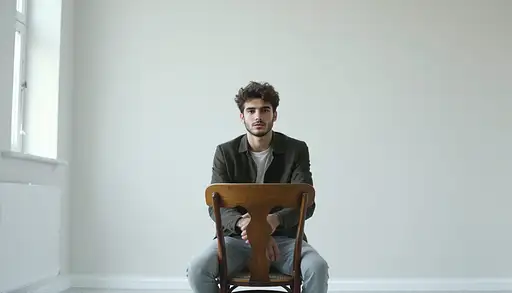 9 months ago Shot 1: Wide shot – A young man sits on a wooden chair in the middle of a white room. . iranian beautiful young face 99a28b7b168 0 43