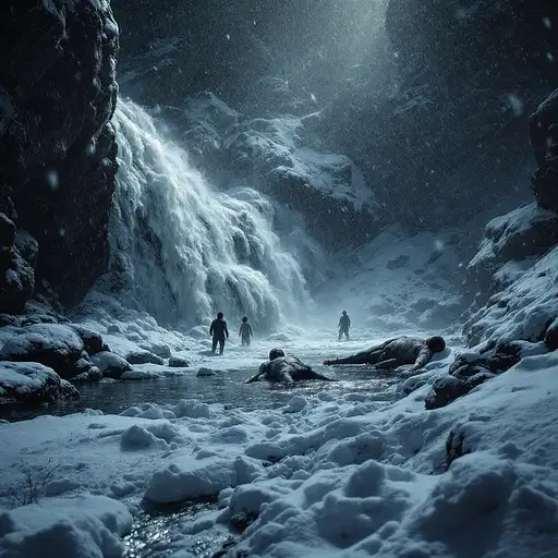 8 months ago Heavy snow, photo style, waterfall at the source of the hot spring, dark night, three dying people, strong wind, shaky flashlight 9a77334c171 0 36