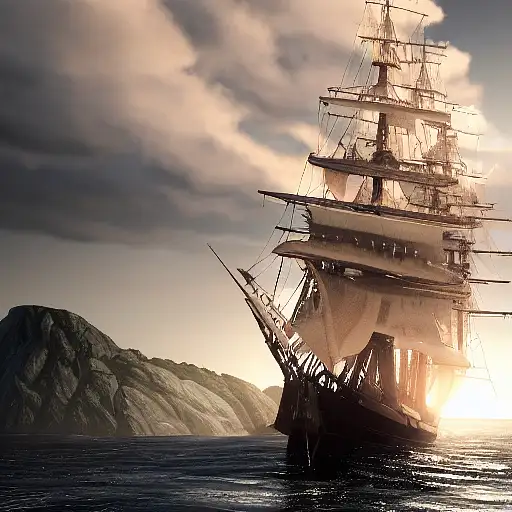 almost 3 years ago photo of a ultra realistic sailing ship, dramatic light, pale sunrise, cinematic lighting, battered, low angle, trending on artstation, 4k, hyper realistic, focused, extreme details, unreal engine 5, cinematic, masterpiece, art by studio ghibli, intricate artwork by john william turner 9c0c038578f 0 28