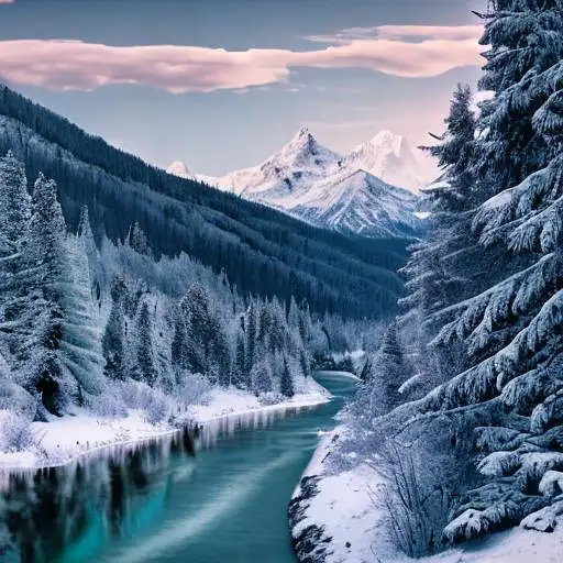 over 2 years ago mother nature ,river flowing from snow capped mountains, deep forest, creek, old-growth forest, confier, gorgeous trees , natural beauty , forest wildlife, mountains barely visible on horizon, 4k, natural --uplight --test AIGraphein 0 120