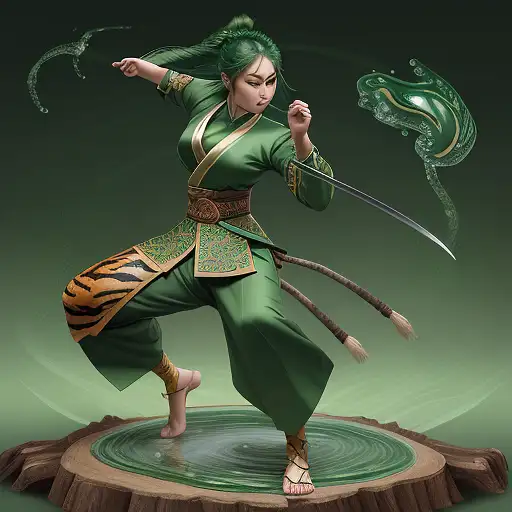 In this hyper-maximalist masterpiece, a breathtaking image of the ultimate (nine-tailed fox girl) unfolds. She stands amidst a mystical forest, exuding ethereal elegance. Her cascading locks, molten gold in color, shimmer with an inner radiance. Iridescent emerald eyes hold ancient wisdom and mischief, captivating the soul. Porcelain-like skin bears intricate cherry blossom markings, subtly shifting with light. Nine resplendent tails, adorned with patterns inspired by various art movements, weave a harmonious visual symphony. Ornate kimono, inspired by traditional Japanese woodblock prints, showcases meticulous detail. The enchanted forest bursts with vibrant colors, blending surrealism and fantasy. This epic masterpiece evokes awe, intertwining hyper-realistic rendering, intricate details, and seamless fusion of styles. It is a groundbreaking testament to the artist's skill, inviting viewers into a world where beauty and magic coexist. With unparalleled attention to detail, it transcends visual boundaries, offering a timeless encounter with the extraordinary nine-tailed fox girl—a stunning embodiment of artistic excellence.