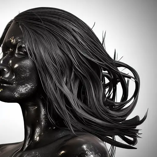 over 2 years ago a 3D realistic color photo, a woman made of black chrome screams in horror,ripping through the crowd with raw anguish, sinister variation deep ebony hue merges with a subtle metallic sheen, her form sculpted from the depths of black chrome. stands smooth and statuesque, imperfectly crafted curves, black chrome, eyes like pools of liquid obsidian, ( a statue by by Aleksander Gierymski, featured on cgsociety, hr giger ) (( stained glass, 2 0 2 1 cinematic 8k framegrab) ( hyperrealistic photo luis royo, horror, fantasy horror, rain, temple made of flesh, wrapped in wires and piones, steel barbs, razors, octane, disfigured, deformed, mutated, ) --ar 3:2 APAWorks 0 29