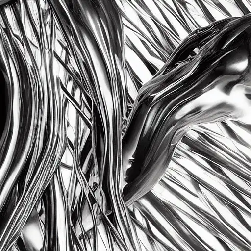 over 2 years ago a 3D realistic color photo, a woman made of black chrome screams in horror,ripping through the crowd with raw anguish, sinister variation deep ebony hue merges with a subtle metallic sheen, her form sculpted from the depths of black chrome. stands smooth and statuesque, imperfectly crafted curves, black chrome, eyes like pools of liquid obsidian, ( a statue by by Aleksander Gierymski, featured on cgsociety, hr giger ) (( stained glass, 2 0 2 1 cinematic 8k framegrab) ( hyperrealistic photo luis royo, horror, fantasy horror, rain, temple made of flesh, wrapped in wires and piones, steel barbs, razors, octane, disfigured, deformed, mutated, ) --ar 3:2 APAWorks 0 33