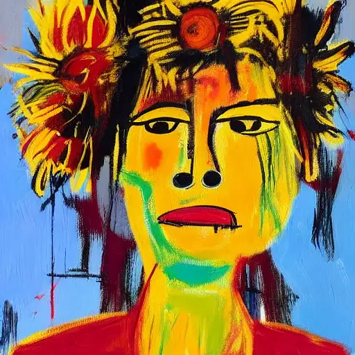 over 2 years ago a painting of a beautiful female by Jean-Michel Basquiat, sun flowers in background, oil painting, with palette knife, --ar 3:2 --c 15 --s 5 APAWorks 0 20