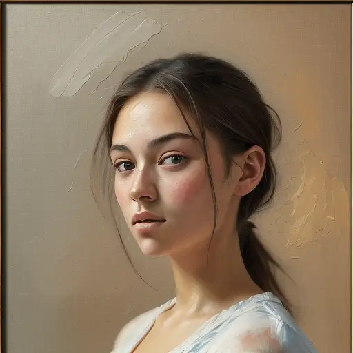 2 years ago model, soft impressionist impasto brush strokes perfect composition, perfect face, rim ligthing, character portrait, plain background, intricate, oil on canvas, masterpiece, expert, insanely detailed, 4k resolution APAWorks 0 52