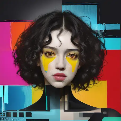 2 years ago female face with curly thick hair, geometric abstract portrait, bright vibrant colorful, gritty, cybernetics, digital ui, abstract blocks, by Guy Denning, Russ Mills, chromatic, color blocking! , octane, object centered, oil on canvas, symmetrical, Red, concept art, abstract, trending on artstation, Pablo Picasso, Gustav Klimt, trippy, high texture, --c 100 --s 1000 --ar 3:4 --style raw --q 2 --s 750 APAWorks 0 28