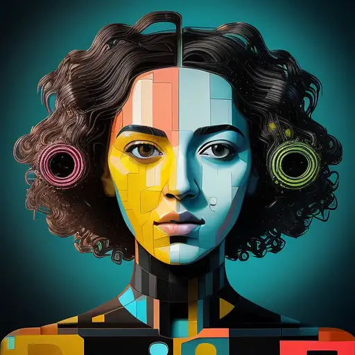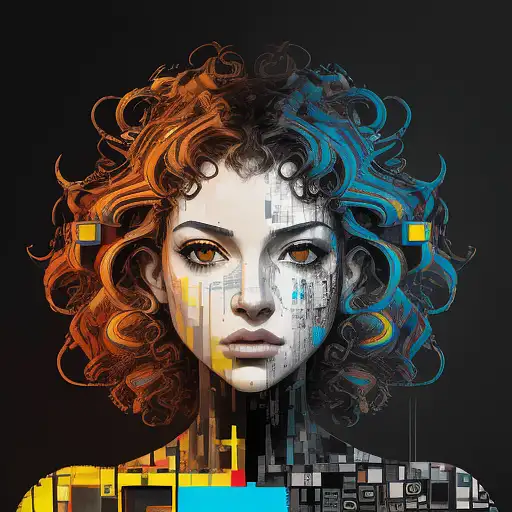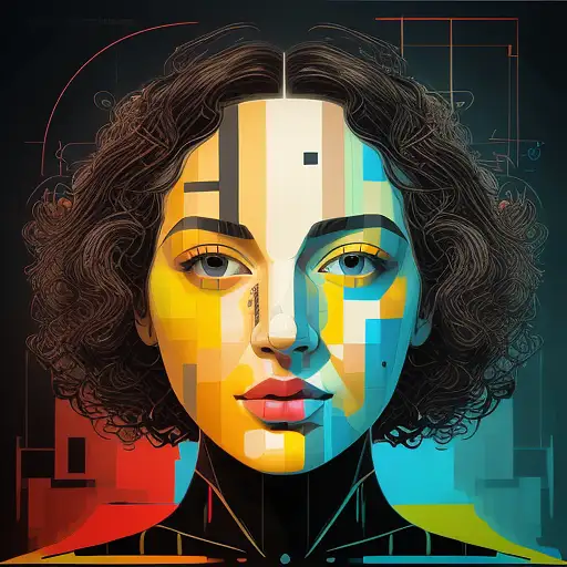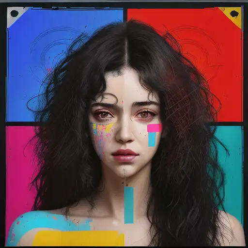 2 years ago female face with curly thick hair, geometric abstract portrait, bright vibrant colorful, gritty, cybernetics, digital ui, abstract blocks, by Guy Denning, Russ Mills, chromatic, color blocking! , octane, object centered, oil on canvas, symmetrical, Red, concept art, abstract, trending on artstation, Pablo Picasso, Gustav Klimt, trippy, high texture, --c 100 --s 1000 --ar 3:4 --style raw --q 2 --s 750 APAWorks 0 30
