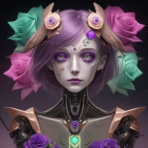 2 years ago ultra well detailed, rose, gold-tipped petals, green, purple, sapphire, woman's face, owl eyes, full body, cyborg, highfashion, flowers, future, hidden face, faceless, remove face, jewelry, -ray, neon, strange, weird, insane APAWorks 0 53