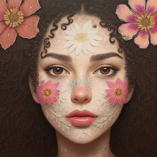 2 years ago detailed painting of beautiful of woman face, flower printed skin, flower patterns on face, think texture, APAWorks 0 34