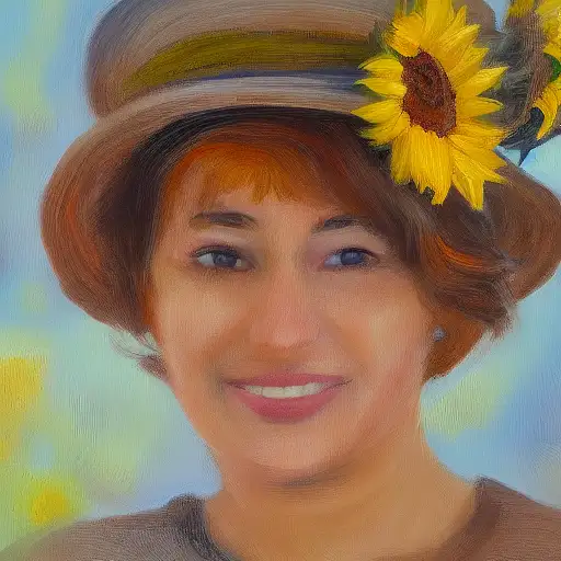 2 years ago impressionist painting, realistic face of woman, sunflower hat, texture, 4k, detail focused, extreme details, separate brush strokes APAWorks 0 160