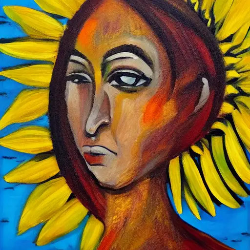 2 years ago expressionist painting, face of woman, sunflower hat, texture, 4k, detail focused, extreme details, separate brush strokes APAWorks 0 170