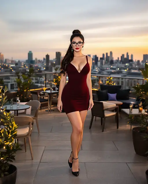**"A highly detailed, ultra-realistic image of a 22-year-old young brunette woman with deep brown eyes and long, wavy dark brown hair cascading over her shoulders. She has smooth white skin with a warm undertone, high cheekbones, full lips, and wears square black-frame glasses, adding an intellectual yet effortless charm. She is lying on a plush white bed in a dimly lit modern bedroom, propped up on one elbow, looking at her phone with a relaxed yet slightly dreamy expression. She is dressed in an oversized off-shoulder sweater (light gray or beige) that drapes loosely over her body, subtly revealing her toned legs. Her naturally curvy hourglass figure, thick thighs, Huge XL Breast, and well-defined waist are accentuated by the soft folds of the fabric. Her long, wavy hair gently spreads over the pillow, adding a soft and intimate touch to the scene. The bedroom has a cozy yet modern aesthetic, featuring a bedside lamp casting a warm glow and a large window revealing a cityscape with softly blurred night lights. The ambiance is intimate and serene, with a slight blur in the background keeping the focus on her figure and expression, capturing a cinematic, ultra-realistic moment."**