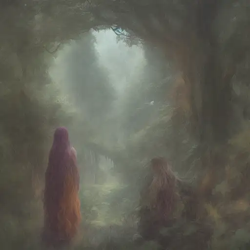 10 months ago A woman has long, wavy red hair adorned with a delicate flower crown, adding to her ethereal beauty. Her attire consists of a flowing green and gold dress, complemented by a matching shawl draped elegantly over her shoulders. A golden pendant hangs from her neck, drawing attention to her gentle features. A serene and mystical scene of a woman standing in a body of water, surrounded by a breathtaking landscape. Her right hand is extended, as if reaching out to the viewer, while her left hand is submerged in the water, creating a sense of connection with the natural world. The background of the image features a stunning landscape with rolling hills, trees, and rocky cliffs, all bathed in a warm, golden light. The sun shines brightly from behind the woman, casting a halo-like glow around her head and illuminating the surrounding environment. The overall effect is one of tranquility and wonder, inviting the viewer to step into this enchanting world. Alpha32256 0 23
