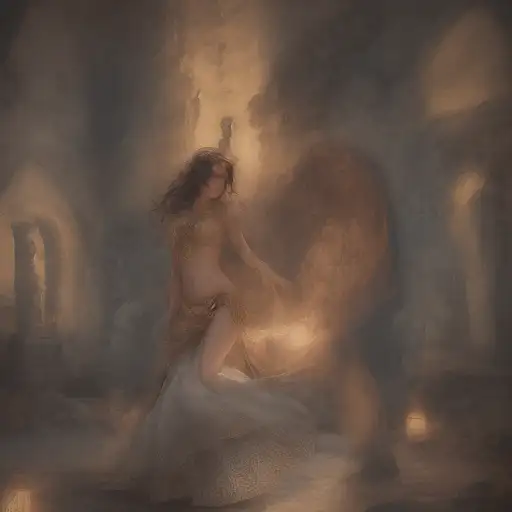10 months ago /imagine Fireflies dance around her, casting a whimsical glow over her white silk gown (((swirly bokeh))) amidst a sunny afternoon backdrop. Soft, natural light bathes her form, illuminating her sensual pose. She stands barefoot, surrounded by vibrant flowers, her gaze captivating the viewer. Her elegant, cruel leather choker and a golden chain leading from the choker down dangles adding intrigue. Her back is to the camera, and she looks over her shoulder, inviting the viewer's attention. Captured with a Leica M10 and Helios-44 58mm f/2 lens, stopped down to F2.8, this fine art color photograph boasts deep, rich tones and lovely highlights. Broad daylight enhances her radiant expression, while the soft, diffused light shines through her long, hip-length wavy messy raven hair, highlighting her figure's contours. Alpha32256 0 7