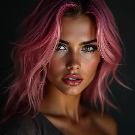 6 months ago ((masterpiece)), ultra detailed, 4K, solo, realistic Italian woman, 22 years old, fit, athletic body, sensual expression, brown eyes, slightly raised eyebrows, full lips, powerful stance, voluminous pink hair, realistic skin with fine grain, tight t-shirt, red skirt, half-length close-up, vivid studio lighting, subtle shadows, photorealistic, sharp facial features, shot with a SLR, ((without excessive grain)), ((without noise artifacts)), ((clean natural look)). AngeloIA 0 22