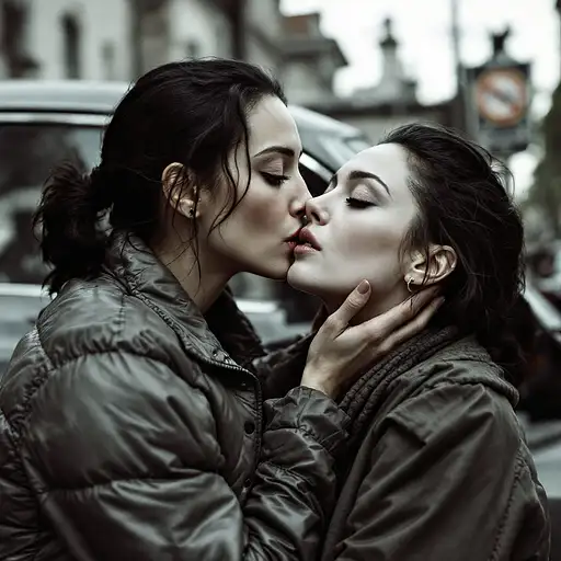 A woman stands still in the dim light, her head tilted slightly as a small, ornate vial of poison is pressed to her lips (1.5). Her eyes are closed tightly, her expression steeped in sorrow and regret, as though haunted by memories of lost love. A single tear rolls down her cheek, catching the faint green glow of the poison as it trails across her face. Her lips part slightly, trembling as she drinks the bitter, cold liquid, her body tense with the weight of her decision. The vial is delicate, crafted from glass that glows faintly with an ominous greenish light. Its liquid swirls unnaturally, casting faint reflections on her pale skin and trembling fingers. She wears a flowing, sheer white robe (1.4), its translucent fabric clinging softly to her body, revealing faint outlines of her figure beneath. The robe ripples gently around her arms and waist, as though stirred by an invisible breeze, and the poison’s green glow reflects faintly off its delicate folds. Beneath her skin, a smoky, luminous green line is visible, beginning at her throat and trailing downward in a diffused, ethereal path (1.5). The line pulses softly, its edges hazy and shifting like luminous smoke, yet remaining unified as it flows through her body. The glowing trail brightens subtly as it descends, coiling delicately around her heart in a soft, radiant glow. The eerie green light from the poison interacts with the translucent robe, casting faint shadows and glowing highlights across her chest, amplifying the surreal beauty of the scene. Her free hand rests lightly against her chest, as though feeling the poison’s icy presence as it travels through her. The other hand holds the delicate vial, her fingers gripping it tightly, the tension in her body underscoring her resolve and the bitter pain of the moment. She stands upright, her figure illuminated by the glowing green line and the faint light of the vial. The dark, minimal background fades into shadows, ensuring the glowing poison and her tear-streaked face remain the focal points. The atmosphere is suffused with emotional tension, the glowing green line serving as both a visual and symbolic representation of the poison’s cold, invasive power. Her sheer robe, trembling posture, and closed eyes convey a haunting mix of regret, sorrow, and the inevitability of her choice.