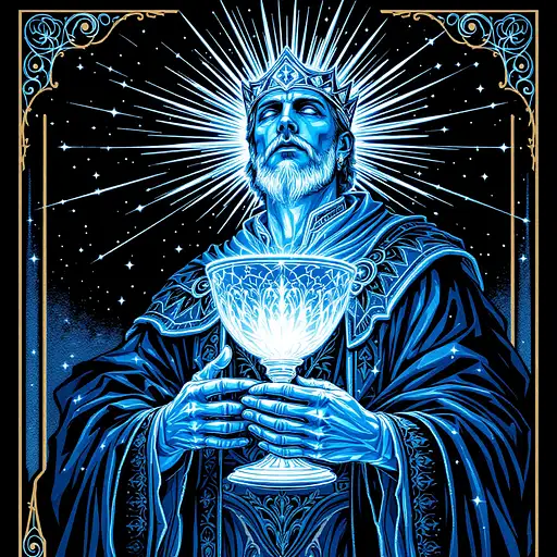 5 months ago Art Nouveau tarot blue and white glowing male king holding a large radiating chrystal goblet Brady689 1 22
