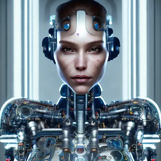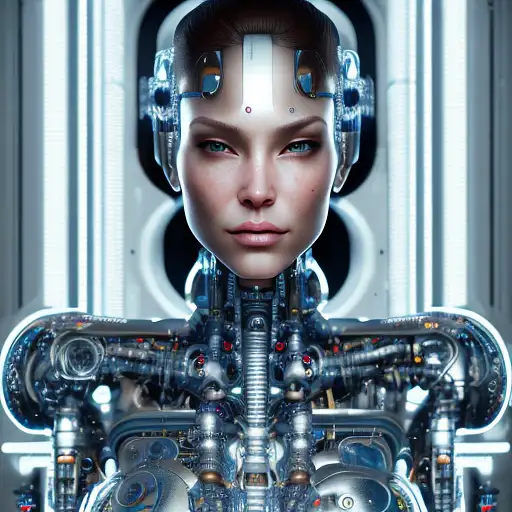 almost 3 years ago A full body portrait of a female cyborg queen, highly detailed face, unreal engine, stunning proportions, masterpiece, complex, symmetric, intricate, highly detailed body, 8k, pristine clarity, award winning, cyberpunk, 3 point lighting, lifelike, vivid colors, vibrant CASSELLEO83 0 120