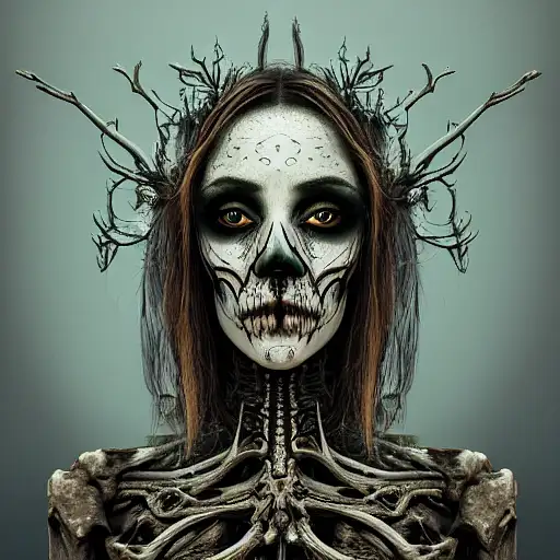 almost 3 years ago a beautiful detailed 3d matte painting of female empress of the dead, symmetrical features, ominous, magical realism, texture, intricate, ornate, royally decorated, skull, skeleton, whirling smoke, embers, red adornements, blood colored torn fabric, vibrant colors, fantasy, trending on artstation, volumetric lighting, micro details, 3d sculpture, ray tracing, 8k, horror, post-apocalyptic CASSELLEO83 1 130