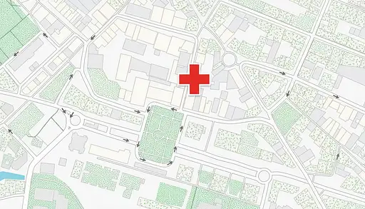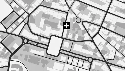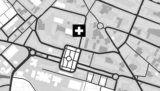 22 days ago It should show a hospital cross instead of O Sanatorio and it should show green spaces and the streets but no buildings and no text. Make it fully in black and white. The whole image is black and white. Celine PRO 0 13