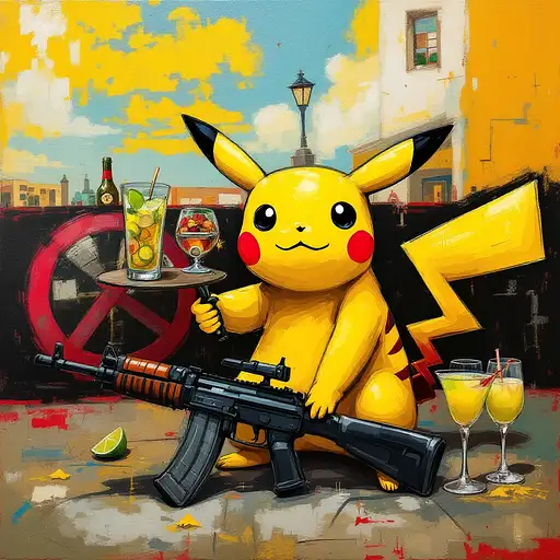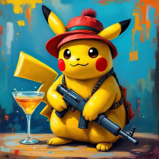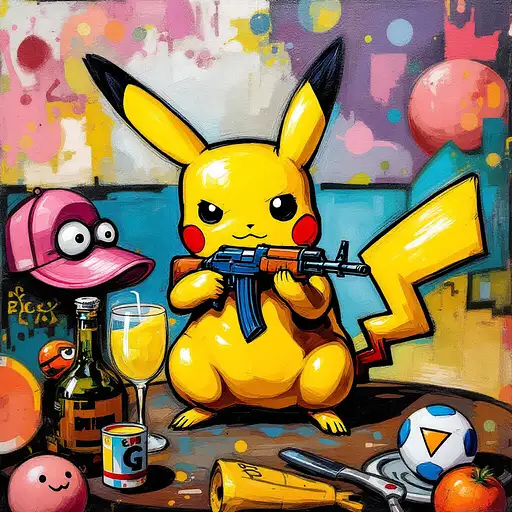 10 months ago A Picasso Style painting of pikachu with an ak47, part of the crips gang. benidorm, bottom glass boat, giant margaritas, maltrato animal, intransigencia, pedro sanchez, funcionarios, crypto bros, gran canaria, apolo bingo, queueing, los secretos, pitingo, ramoncin, sgae,faltarle a la gente mayor, Celine PRO 0 11
