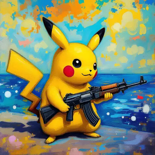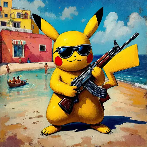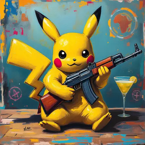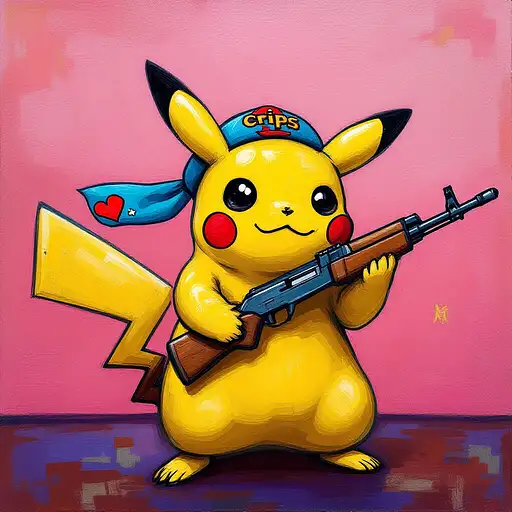 10 months ago A Picasso Style painting of pikachu with an ak47, part of the crips gang. benidorm, bottom glass boat, giant margaritas, maltrato animal, intransigencia, pedro sanchez, funcionarios, crypto bros, gran canaria, apolo bingo, queueing, los secretos, pitingo, ramoncin Celine PRO 0 16