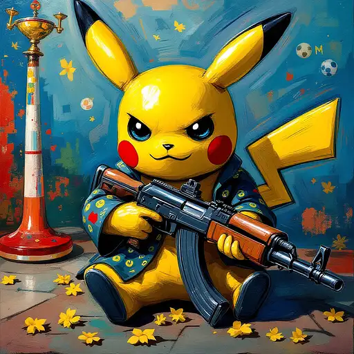 10 months ago A Picasso Style painting of pikachu with an ak47, part of the crips gang. benidorm, bottom glass boat, giant margaritas, maltrato animal, intransigencia, pedro sanchez, funcionarios, crypto bros, gran canaria, apolo bingo, queueing, los secretos, pitingo, ramoncin Celine PRO 0 15