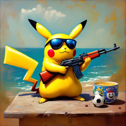 10 months ago A Picasso Style painting of pikachu with an ak47, part of the crips gang. benidorm, bottom glass boat, giant margaritas, maltrato animal, intransigencia, pedro sanchez, funcionarios, crypto bros, gran canaria, apolo bingo, queueing, los secretos, pitingo, ramoncin, sgae,faltarle a la gente mayor, Celine PRO 0 10
