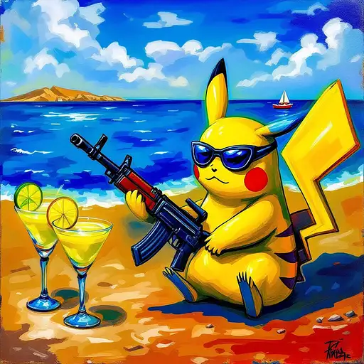 10 months ago A Picasso Style painting of pikachu with an ak47, part of the crips gang. benidorm, bottom glass boat, giant margaritas, maltrato animal, intransigencia, pedro sanchez, funcionarios, crypto bros, gran canaria, apolo bingo, queueing, los secretos, pitingo, ramoncin Celine PRO 0 13