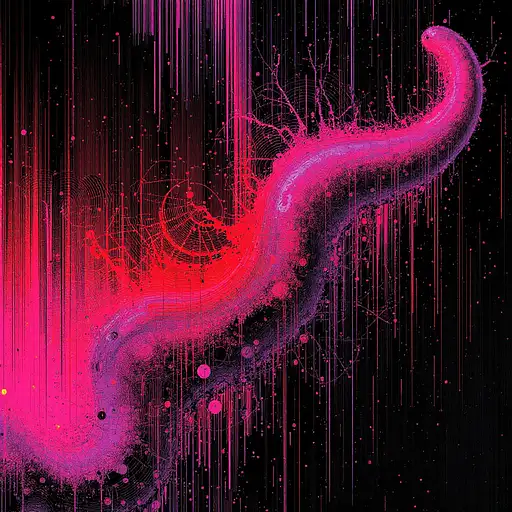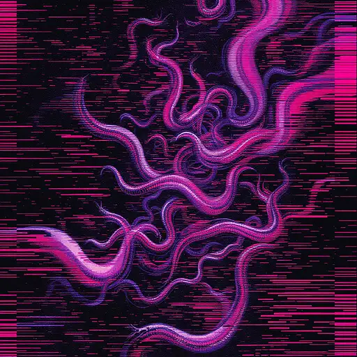 10 months ago Heavy digital distortion, glitch art aesthetic, oversaturated reds and purples, corrupted data visualization, pixelation artifacts, analog interference patterns, chromatic aberration, VHS distortion, digital decay, wavelight hint interference patterns, light hint of misty slugs, many slugs, millions of slugs Celine PRO 0 17
