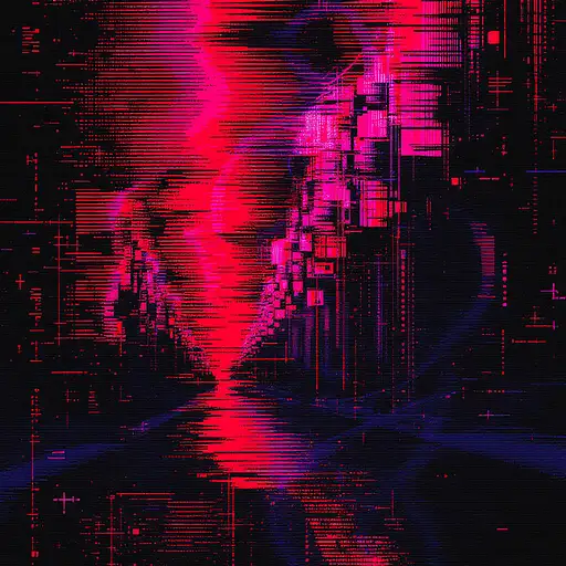 10 months ago Heavy digital distortion, glitch art aesthetic, oversaturated reds and purples, corrupted data visualization, pixelation artifacts, analog interference patterns, chromatic aberration, VHS distortion, digital decay, wavelight hint interference patterns, light hint of misty slugs, many slugs, millions of slugs Celine PRO 0 11