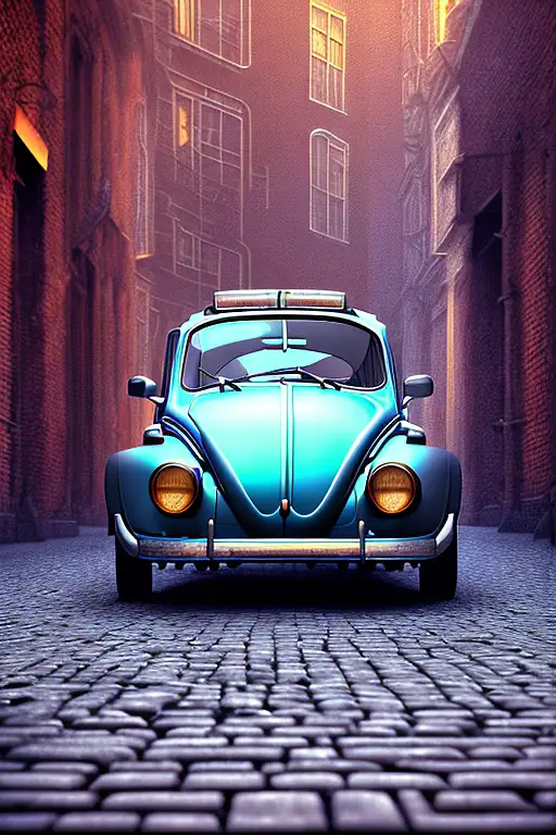 over 2 years ago mdjrny-v4 style highly detailed retro VW beetle side view | on cobblestone street | in the sixties |vintage | intricate detail | digital art | digital painting | concept art | award winning | max detail | cinematic | light dusk | DD137 1 73