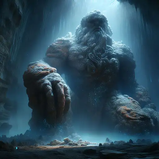 over 1 year ago In the depths of a vast, subterranean cavern, Gorgon, a powerful and ancient stone golem, guards the hidden treasures of the earth. The soft, ethereal glow of bioluminescent fungi and glowing crystals illuminates his towering, rock-hewn form, revealing the intricate, mineral-infused patterns that adorn his powerful, earthen limbs and the subtle, rune-like markings that signify his ageless wisdom. DEROUICHE 1 100