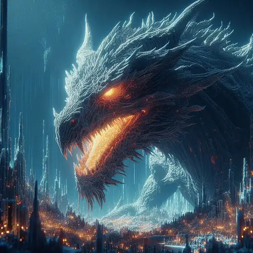 over 1 year ago mesmerizing 3D scene showcasing Midir, the Ancient Dragon, from Dark Souls 3. Immerse Midir in a mystical and awe-inspiring natural environment, capturing the essence of his ancient and majestic presence. Utilize advanced 3D techniques to intricately detail Midir's colossal scales, the fiery glow within his eyes, and the abyssal void from which he emerged. Freeze a moment that conveys the sheer grandeur and enigmatic nature of this formidable creature. Infuse the scene with an atmosphere that resonates with the epic and mysterious themes of Dark Souls 3. Craft a composition where Midir, the Ancient Dragon, stands as a mythical and imposing figure within a visually stunning and emotionally charged landscape DEROUICHE 8 280