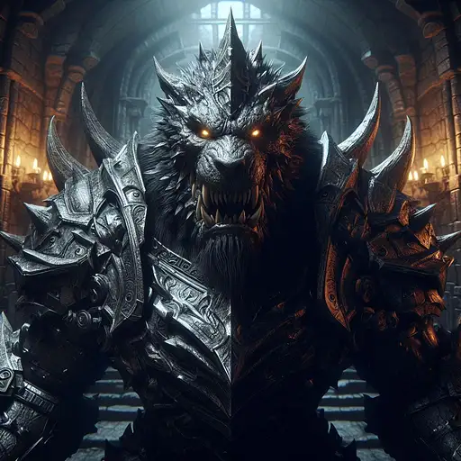 over 1 year ago In a dark, foreboding dungeon, Ironmaw, a fearsome, armored beast, guards the ancient treasures within. The artistic 3D image captures every imposing, metallic detail, as Ironmaw's towering, spiked form looms ominously amidst the dimly-lit, stone chamber. His fierce, glowing eyes and menacing snarl convey his unyielding ferocity, as he embodies the essence of strength and intimidation. The stunning artistry of the portrait brings Ironmaw's captivating allure and powerful presence to life, showcasing the breathtaking allure of this innovative, never-before-seen armored beast. DEROUICHE 3 94