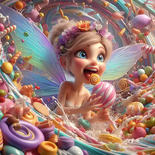 over 1 year ago In a fantastical, candy-coated wonderland, Sugarplum, a sweet-toothed fairy, indulges in a delightful assortment of delectable treats. The artistic 3D scene captures every mouthwatering, scrumptious detail, as Sugarplum's iridescent wings flutter amidst a swirling sea of colorful confections. Her wide-eyed, joyful expression and playful demeanor convey her insatiable appetite for all things sweet, as she embodies the essence of indulgence and delight. The extraordinary artistry of the portrait brings Sugarplum's captivating allure and enchanting nature to life, showcasing the innovative, awe-inspiring design of this never-before-seen fairy. DEROUICHE 1 39