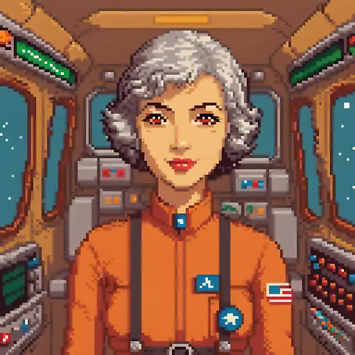 almost 2 years ago YamamotoAkira, closed mouth, light smile, grey hair, short hair, red eyes, ahoge, AkiraBodysuit, orange suit, belt, standing, looking at the viewer, indoors, science fiction, cockpit, 64 bits Pixel Art DR3NKS 0 33