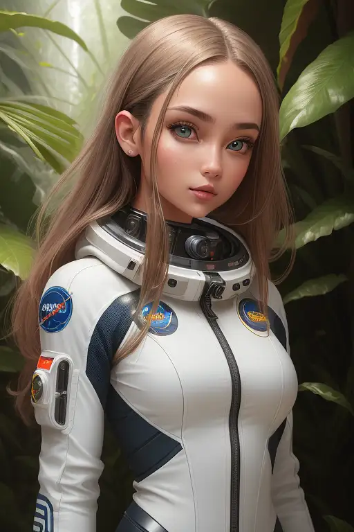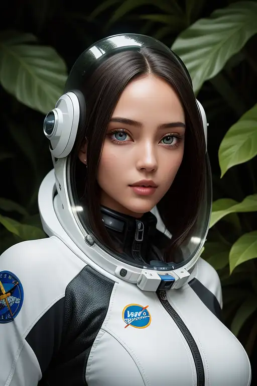 2 years ago A girl in a spacesuit without a helmet. On another planet in the rainforest. Slim body. A beautiful face. A beautiful face. Realistic face. Beautiful eyes. Clear eyes. Detailed eyes. Beautiful eyes. Symmetrical eyes. Beautiful hair. Detailed hair. High detail. Lots of details. Sexy astronaut costume. Detailed suit. Detailed background. High resolution. Photorealism. High detail. 8k. Ultra quality. A masterpiece. DarlingCat 1 64
