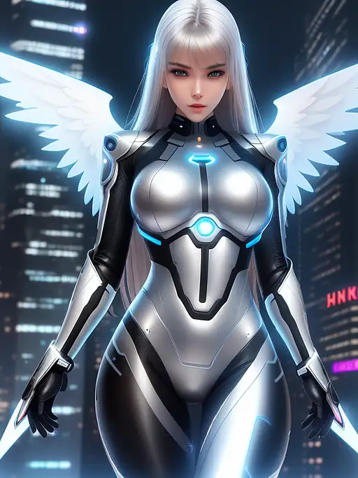 2 years ago Girl cyber-angel. Beautiful face. Slender body. Symmetry. Clear face. Fantastic face. Fantastic eyes. Symmetrical eyes.Realistic face. Beautiful eyes. Detailed face. Detailed eyes. Futuristic cyber suit. Against the backdrop of the city of the future. Detailed suit. High quality picture. Detailed picture. Masterpiece. ArtStation. A high resolution. DarlingCat 0 310