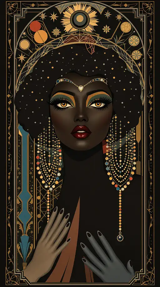 22 days ago black-woman-dark-skin-meschini-pochoir-pierrot-pierrette-woman-art-deco-original-1920s-postcard--surrealism, baroque pop, symmetrical composition, Mark Ryden and Romare Bearden style Demi444 PRO 0 26