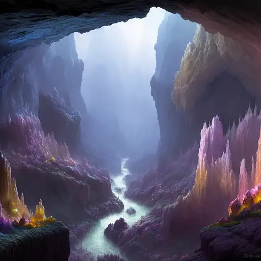 over 2 years ago ultra realistic illustration and highly detailed digital render of panorama view in a dark underground cavern rich in huge colorful crystal deposits by greg rutkowski and kinkade, colorful crystals, highly detailed, vibrant and vivid, smooth, crystals, gems, geode, darkness, minereal deposits, cinematic, high contrast, hdr, 4 k, trending on artstation, unreal engine, magical, hyperrealistic, bokeh, dof Eagle4477 0 55