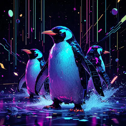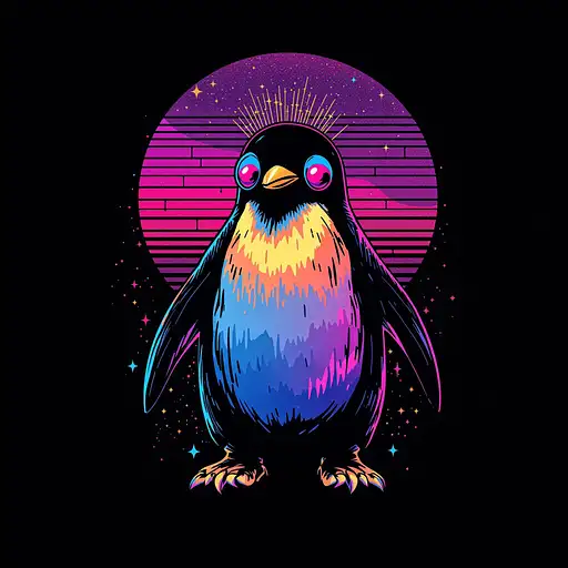 10 months ago 3d 90s rave Techno hybrid one single penguin, no fonts, no background fpr shirt design FRACTAL 0 16