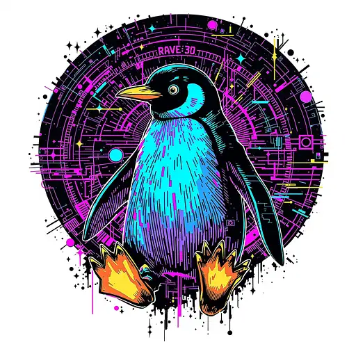 10 months ago 3d 90s rave Techno hybrid one single penguin, no fonts, no background fpr shirt design FRACTAL 0 29