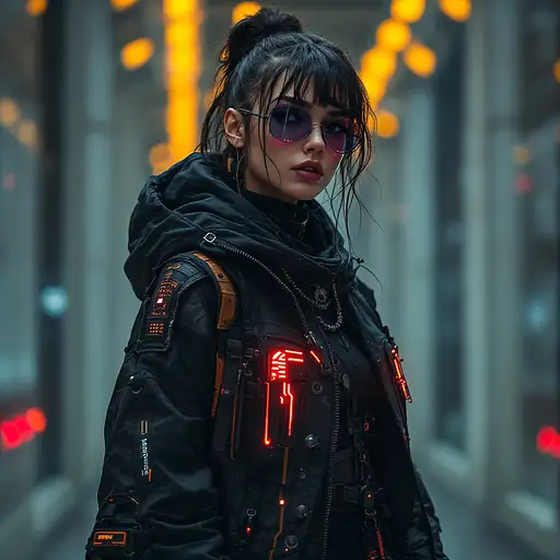 10 months ago instagram model wearing tech wear, futuristic cyber punk clothing. realistic model, cyberpunk FRACTAL 0 19