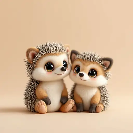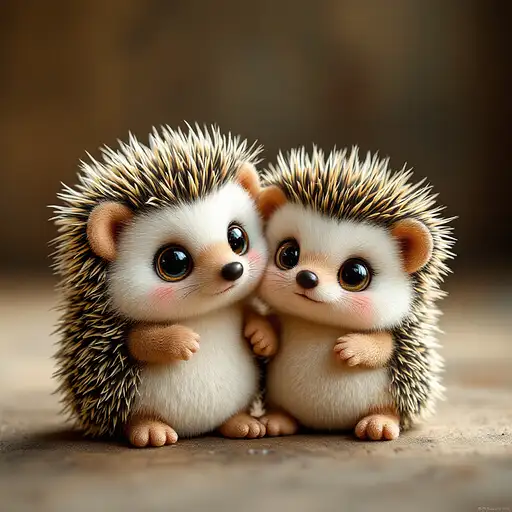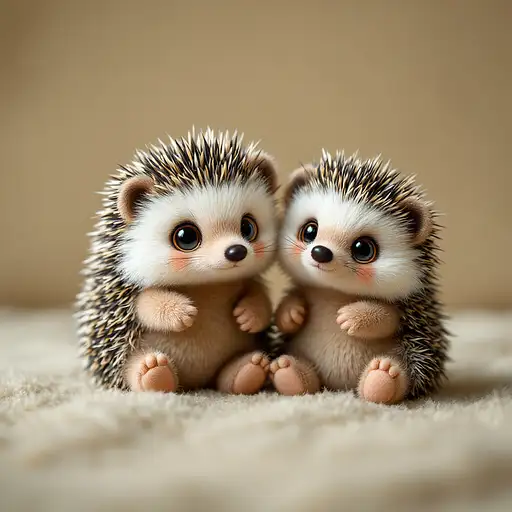 photorealistic 2 cute baby hedgehog plush brother and sister with big eyes, national geographic photography --ar 59:46 --stylize 750 --niji 6