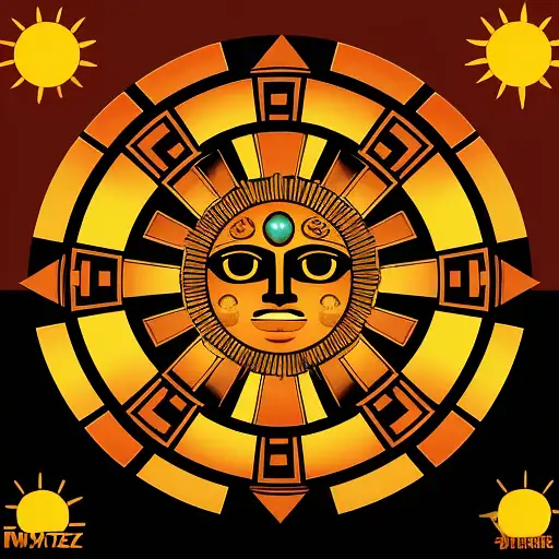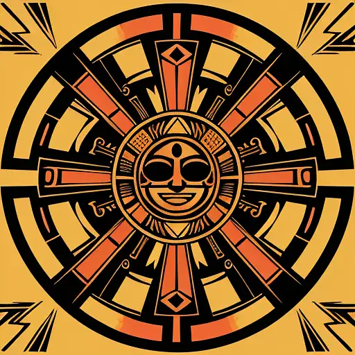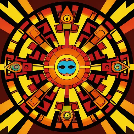 1 year ago aztec SUN SYMBOL In the style of intricate woodcut prints, a colorful, symmetrical compos FRACTAL 0 54