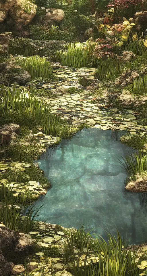 over 2 years ago Forest flower crystal::4 emitting glitter garden landscape with pool of clear water and „black gold marble“::1 path landscape Asher brown Durand, rendered in octane, hyper realistic —aspect 9:16 Fracoris 5 450