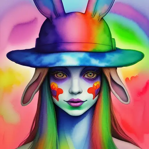 over 2 years ago human rabbit face with hat in psychedelic mode,hat, made entirely with professional watercolor, minute details of the face, background psychedelic matte colors, masterpiece, realistic fantasy Gandoriel 0 44