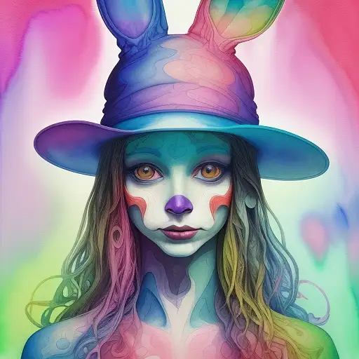 over 2 years ago human rabbit face with hat in psychedelic mode,hat details, made entirely with professional watercolor, minute details of the face, background psychedelic matte colors, masterpiece, Splash ,spiral,surreal,fantasy Gandoriel 0 37